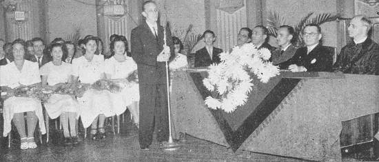 Escola Normal José Bonifácio, realizada no dia 20, no Coliseu Santista. Vê-se, quando discursava, o paraninfo, prof. Mário