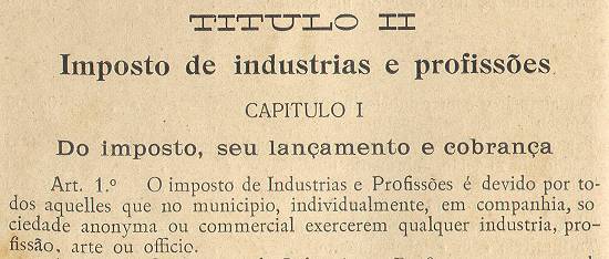 Art. 1º - O imposto e Indústrias e Profissões é devido por todos aqueles que no município,
