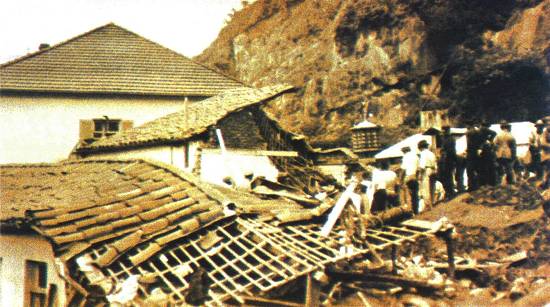 extensão do desastre. Lamentabilíssimo é o que também se vê na travessa ao lado desta Santa Casa. Das diversas moradias outrora habitadas por gente modesta, mas laboriosa, não se vê mais do que um montão de terra e de pedras soterrando cadáveres de