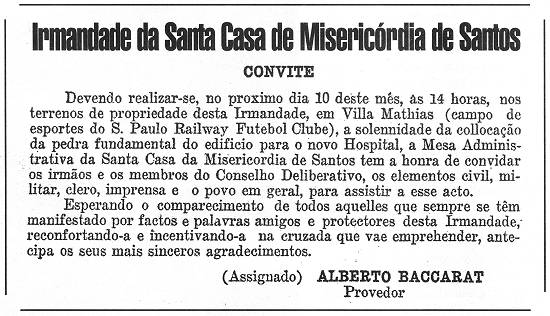 Poucos dias depois, com toda a solenidade, em amplo terreno de propriedade da Santa Casa, situado próximo ao campo do S.P.R.Futebol Clube, realizava-se, com a