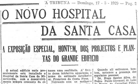 Foi, então, que nasceu a idéia da construção de um novo edifício destinado à Santa Casa de Misericórdia de Santos, edifício esse que dispusesse de todos os