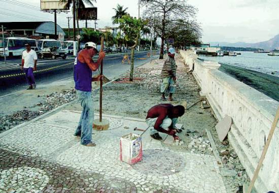 Recomposição do calçadão na Avenida Saldanha da Gama (Ponta da Praia) em agosto de 2003