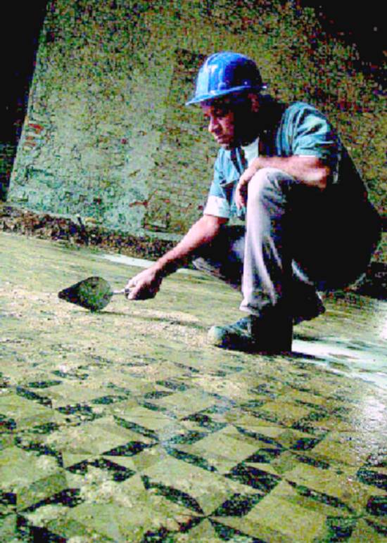 O mosaico português é mais fácil de encontrar na Cidade. O romano é um tanto quanto especial pelo trabalho que dá para ser colocado. É pedra por pedra.