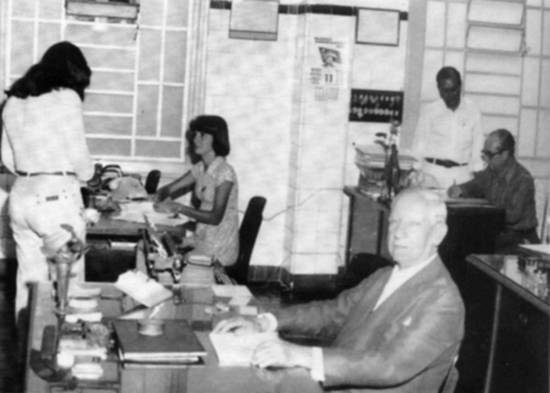 Secretaria da Humanitária, tendo em primeiro plano o mais antigo funcionário da
