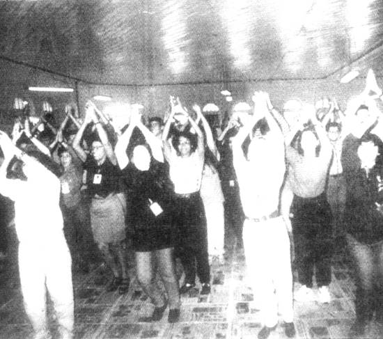 No Salão Paulo Clemente Santini, Paulo Farias começou a sessão com um aquecimento de articulações e circulação sangüínea, deu alongamentos de membros inferiores e superiores, "com ênfase para a coluna vertebral, que é um problema para quem trabalha em escritório", e terminou com um relaxamento a nível de respiração. (MM)