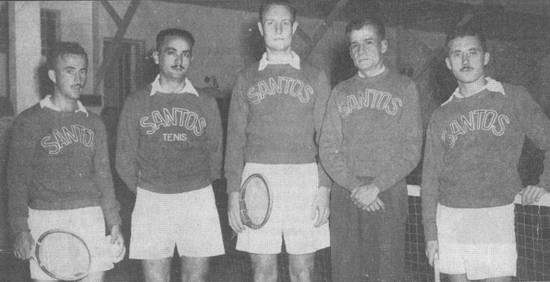 primeira vez em Santos. Da esquerda para a direita: Waldemar Rodrigues de Souza (Vadico), Maneco Fernandes, John Stanley Tate, dr. Theófilo Falcão