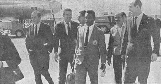 No retorno de uma excursão do Santos FC à Europa, Pelé foi recebido no aeroporto