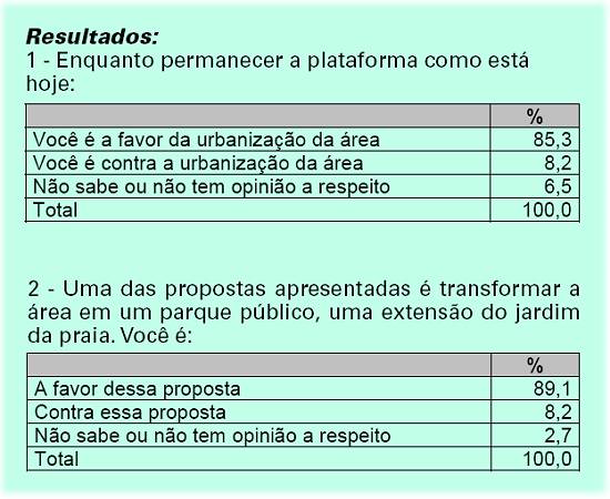 de habitantes dos bairros, conforme o censo do IBGE. Foram realizadas 200 entrevistas com moradores do José Menino, onde está a plataforma, o que