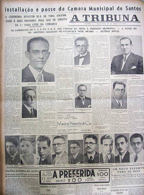 Embora quando se fala da perda da autonomia política de Santos se lembre do período da ditadura militar instalada pela Revolução de 1964, já na década de 30 algo parecido ocorrera. Durante a Revolução de Outubro de 1930, o município perdera a sua autonomia. Em 13 de agosto de 1936, o jornal santista A Tribuna dedicou a última página à instalação da nova Câmara Municipal, composta por representantes dos partidos Constitucionalista (PC) e Republicano Paulista (PRP) (ortografia atualizada nesta transcrição):