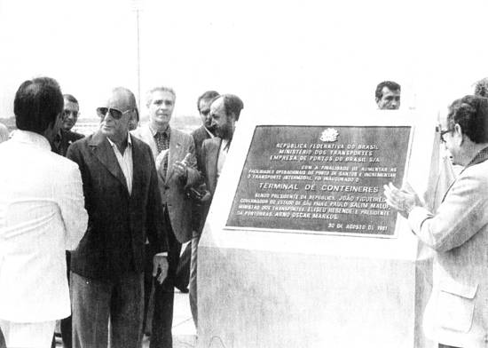 João Baptista Figueiredo ao inaugurar o Terminal de Contêineres da Margem Esquerda do Porto de Santos, em Conceiçãozinha