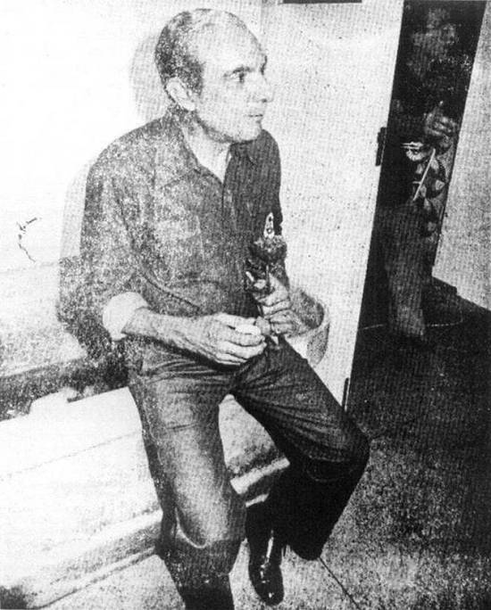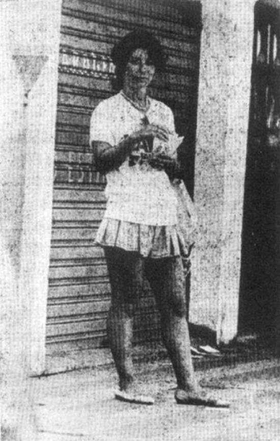 caixa d'água, na cozinha do salão do clube, segurando uma rosa vermelha nas mãos.