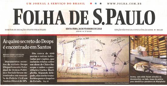 Imagem: reprodução parcial da primeira página do jornal Folha de São Paulo de 26/2/2010