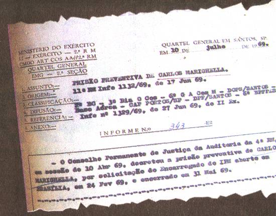 preventiva contra o guerrilheiro Carlos Marighella. A ALN, grupo comandado por Marighella, tinha militantes na Baixada Santista