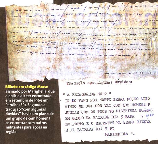código Morse cuja autoria é atribuída pela polícia ao líder guerrilheiro Carlos Marighella (1911-1969).