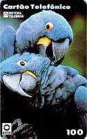 Araras azuis, estampa no cartão telefônico do Sistema Telebrás, de 1992