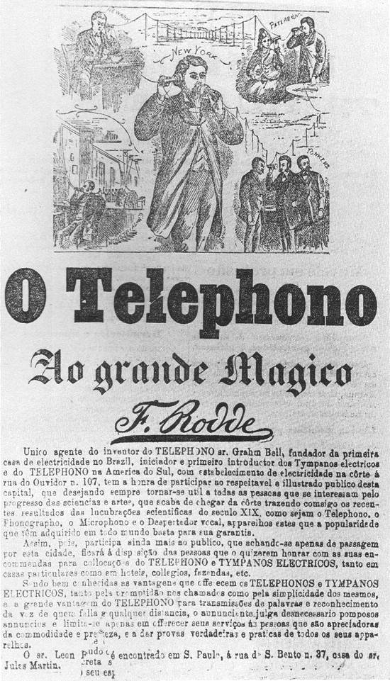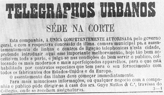...e o da Telégraphos Urbanos, a 6 de janeiro de 1884, em A Província de São Paulo. São documentos que comprovam a importância do telefone para o desenvolvimento de São Paulo
