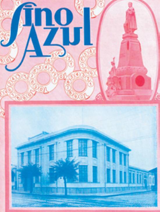 Capa da revista Sino Azul de fevereiro de 1934 (Nº 74, ano VII): homenagem a Santos, com o