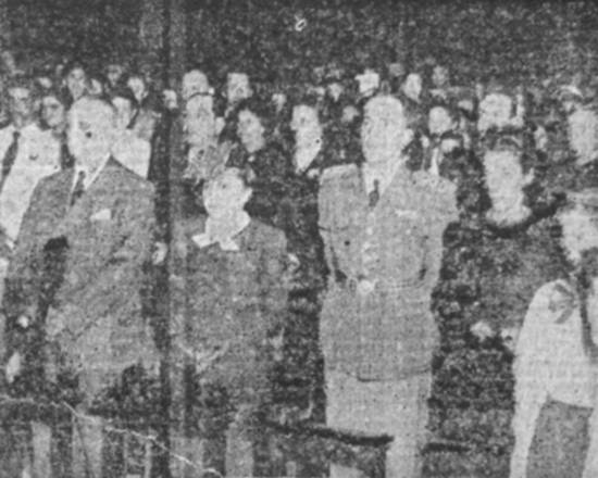 "... no segundo, as altas autoridades civis e militares que assistiam à cerimônia, entre as quais, em primeiro plano, o dr. Antônio Gomide Ribeiro dos Santos, prefeito municipal, e exma. esposa"