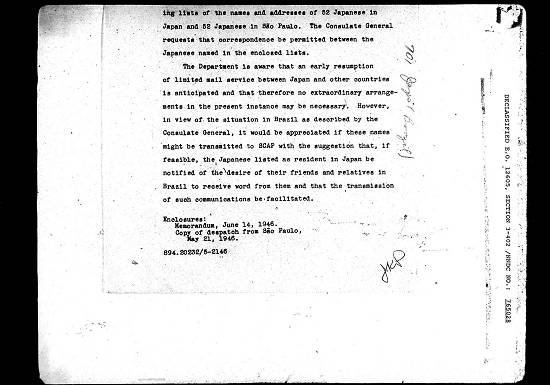 Consulado Geral solicita que a correspondência seja permitida entre os japoneses relacionados nas listas anexadas.