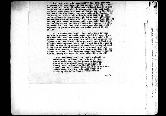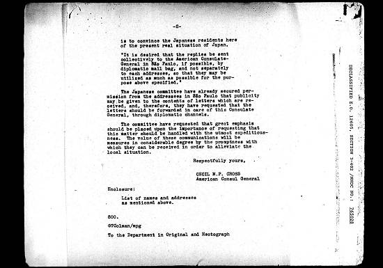 guerra, considerando que o objetivo principal em permitir especialmente esta correspondência é convencer os japoneses residentes aqui da real