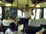 O trabalho dela neste ônibus faz parte do programa Bem-vindo. Uma parceria entre a