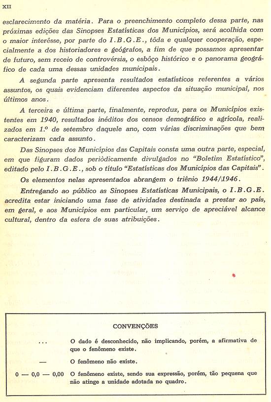 Clique nesta imagem para ir ao índice da obraTendo como referência o dia 1º de setembro de 1940, foi realizado mais um censo demográfico decenal em Santos. Oito anos depois, em 1948, o Instituto Brasileiro de Geografia e Estatística (IBGE)/Conselho Nacional de Estatística publicou no Rio de Janeiro/RJ esta Sinopse Estatística do Município de Santos - Estado de São Paulo, com 78 páginas e uma planta cartográfica regional, de que resta um exemplar na Biblioteca Pública Alberto Sousa, de Santos, cedido em maio de 2010 para digitalização por Novo Milênio, através da bibliotecária Bettina Maura Nogueira de Sá: