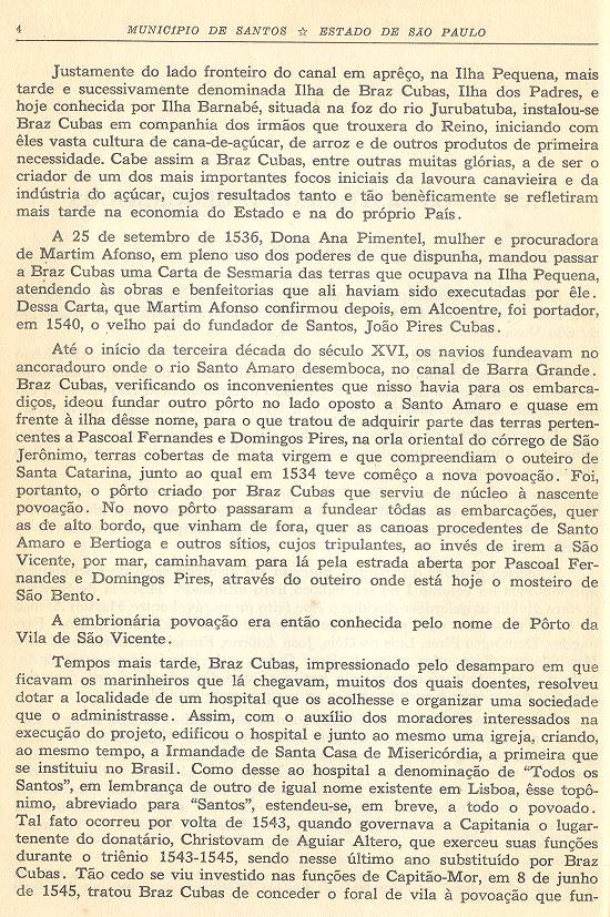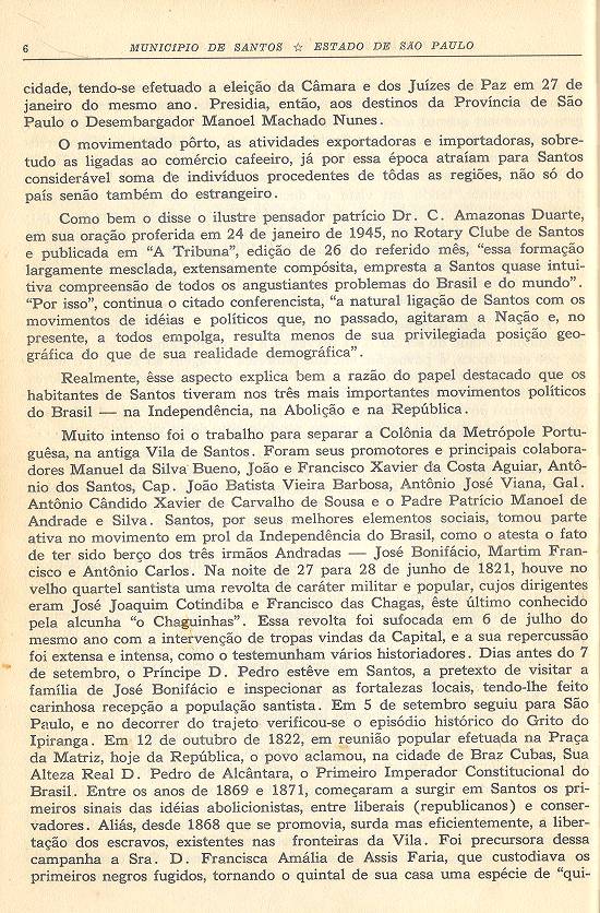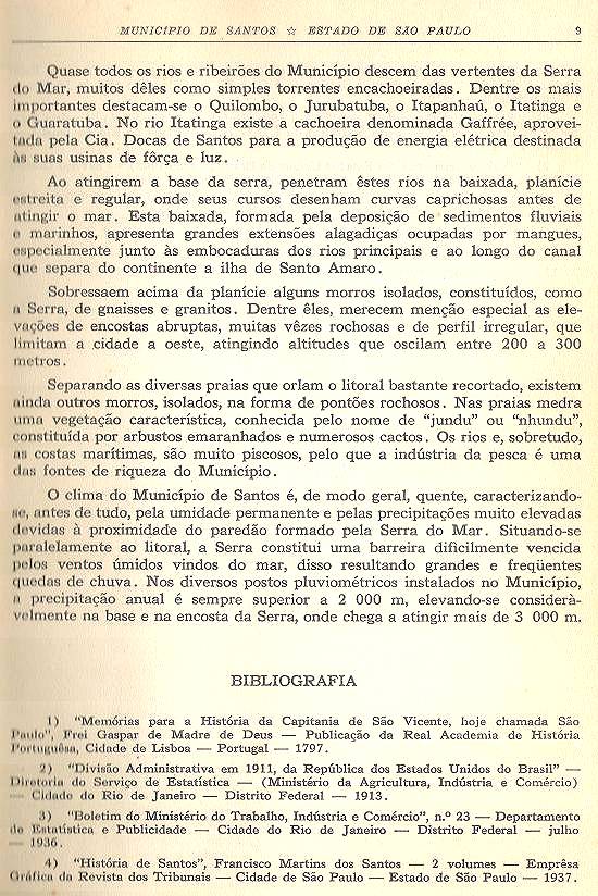 Estatística do Município de Santos - Estado de São Paulo, com 78 páginas e uma planta cartográfica regional, de que resta um exemplar