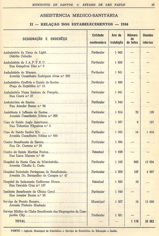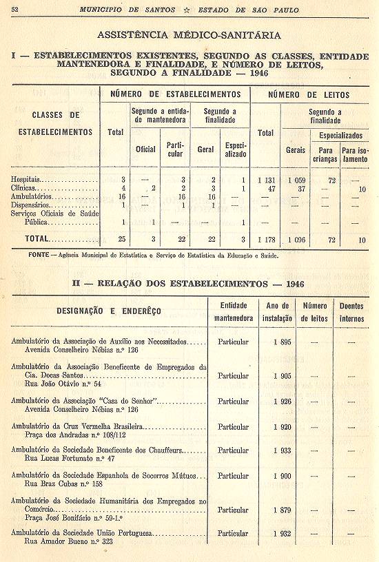 Estatística do Município de Santos - Estado de São Paulo, com 78 páginas e uma planta cartográfica regional, de que resta um exemplar