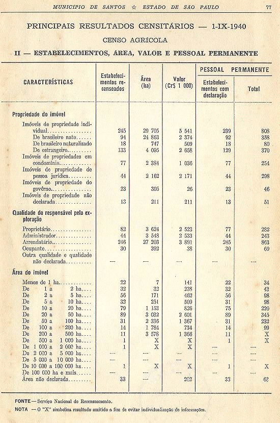 como referência o dia 1º de setembro de 1940, foi realizado mais um censo demográfico decenal em Santos. Oito anos