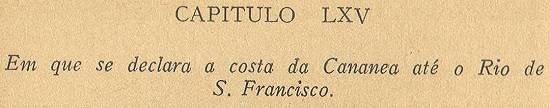 Corre-se esta costa da Cananéia até o Rio de São Francisco Nordeste-Sudoeste, e todas estas ilhas que estão por ela, as que estão à boca do Rio de