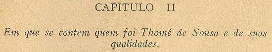 Tomé de Sousa foi um fidalgo honrado, ainda que bastardo, homem avisado, prudente e mui experimentado na guerra de África e da Índia, onde se