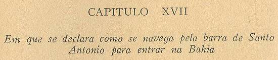 A barra principal da baía é a da banda de Leste, a que uns chamam a barra da cidade e outros de Santo Antônio, por estar junto dela, da banda de
