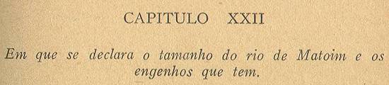 o rio muito de terra à terra; e à mão direita por um braço acima está o famoso engenho de Paripe, que foi de Afonso de Torres e agora é de Baltasar