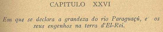 Este Rio de Paraguaçu é mui caudaloso e terá na boca de terra à terra um tiro de falcão, pelo qual entra a maré, que sobe por ele acima seis léguas; e de uma banda e da outra até a Ilha dos Franceses, que são duas léguas, é a terra alta e fraca e mal povoada, salvo de alguns currais de vacas.
