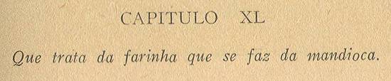que se aproveita o gentio; e os portugueses, que não fazem a farinha da mandioca crua, de que atrás temos dito, senão por necessidade.