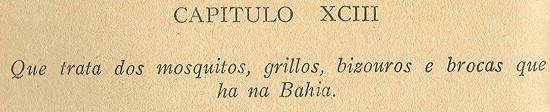 Também se cria na Bahia outra imundície, a que chamamos brocas, que são como pulgas, e voam sem lhe enxergarem as asas; as quais furam as pipas do