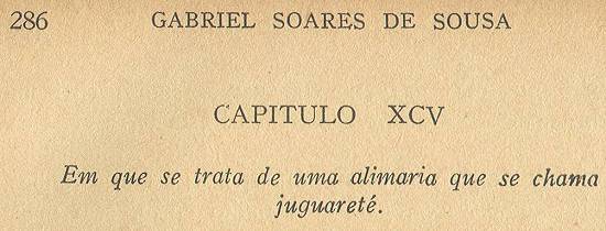 Têm para si os portugueses que jaguaretê é onça, e outros dizem que é tigre; cuja grandura é como um bezerro de seis meses; falo dos