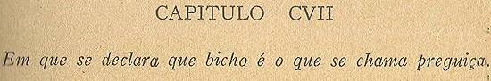 Nestes matos se cria um animal mui estranho, a que os índios chamam , e os portugueses preguiça, nome certo mui acomodado a este animal, pois não há fome, calma, frio, água, fogo, nem outro nenhum perigo que veja diante, que o faça mover uma hora mais que outra; o qual é felpudo como cão d'água, e do mesmo tamanho; e tem a cor cinzenta, os braços e pernas grandes, com pouca carne, e muita lã; tem as unhas como cão e muito voltadas; a cabeça como gato, mas coberta de gadelhas que lhe cobrem os olhos; os dentes como gato.