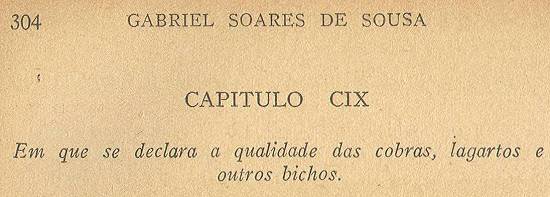 Agora cabe aqui dizermos que cobras são estas do Brasil, de que tanto se fala em Portugal e com razão, porque tantas e tão estranhas, não se sabe onde as haja.
