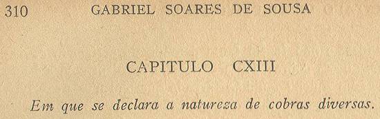 Há outra casta de cobras, a que os índios chamam tiopurana, que são de quarenta e cinqüenta palmos de comprido, que não mordem nem fazem
