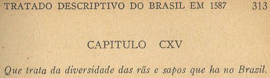 E porque as rãs são de diferentes feições e costumes, digamos logo de umas a que os índios chamam juiponga, que são grandes, e quando