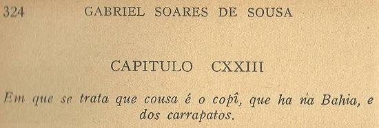 Há na Bahia muitos carrapatos, dos quais se cria infinidade deles no mato, nas folhas das árvores, e com o vento caem no chão; e quem anda por