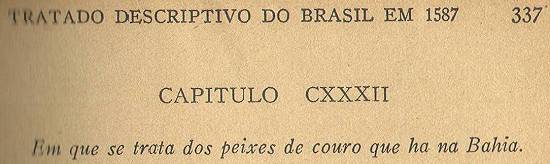 Há outro peixe, a que os índios chamam curis e os portugueses bagres; têm o couro prateado, sem escama, tornam-se à linha, têm a cabeça