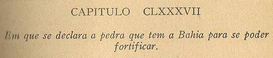 A primeira coisa que convém para se fortificar a Bahia é que tem pedra de alvenaria e cantaria, de que há em todo o seu circuito muita comodidade,