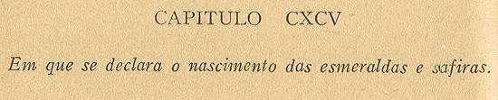 Em algumas partes do sertão da Bahia se acham esmeraldas mui limpas e de honesto tamanho, as quais nascem dentro em cristal, e como elas crescem