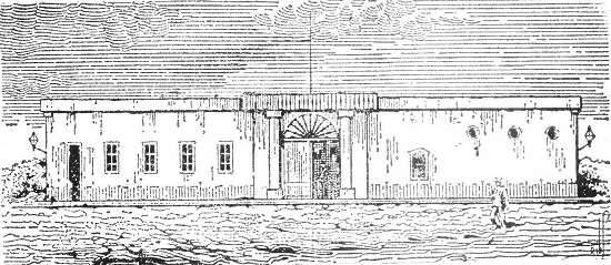 Fachada do Arsenal de Marinha, em bico-de-pena de Ribs