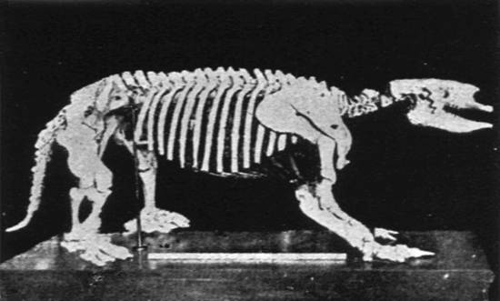 diferentes das espécies euro-asiáticas; um grande tatu (Glyptodon); uma grande preguiça (Megatherium); um símio (Propithecus);