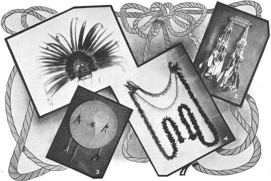 de moluscos fluviais, frutos, ossos, penas e miçangas obtidas dos civilizados, são materiais de que eles fabricam o mais variado sortimento de