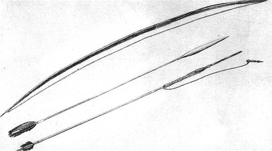 feitas, de formas diversas, construídas perto de água. Na caça e na pesca, são habilíssimos; caçam com arco e flecha, e com a zarabatana, longo tubo