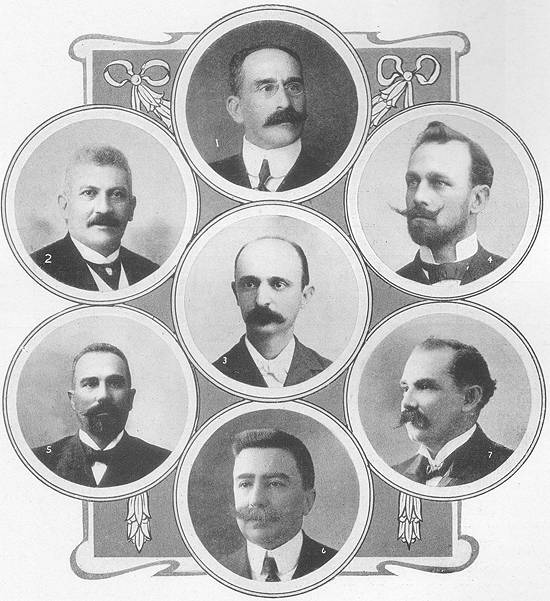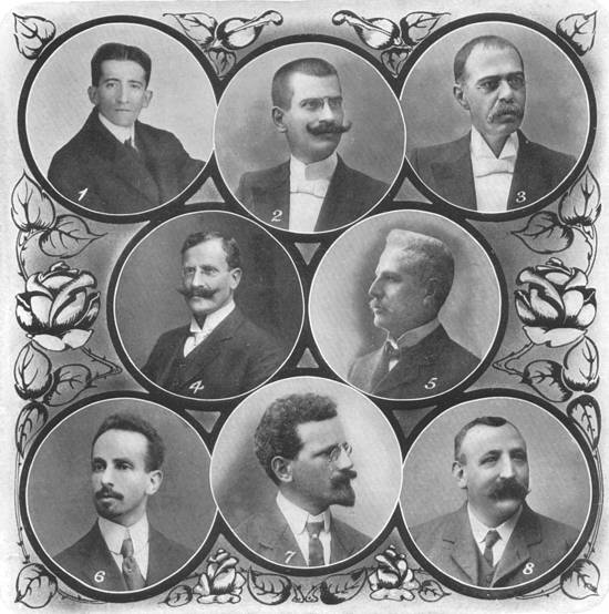 Simplicio Alves de Carvalho; 3) Dr. João José Pereira Parobé; 4) Dr. R. Ahrons; 5) Dr. Joaquim A. Ribeiro; 6) Dr. Victor Azevedo Bastian; 7) II.